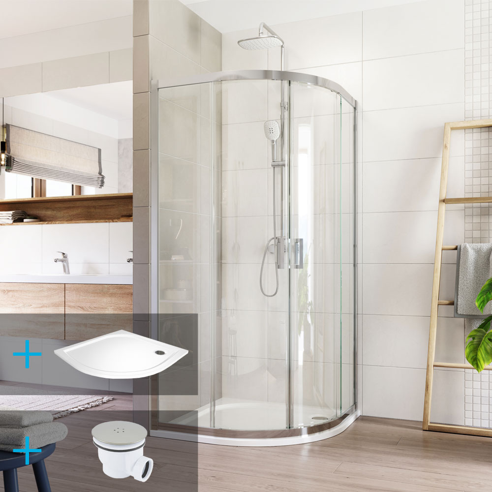 - Čtvrtkruhové sprchové kouty