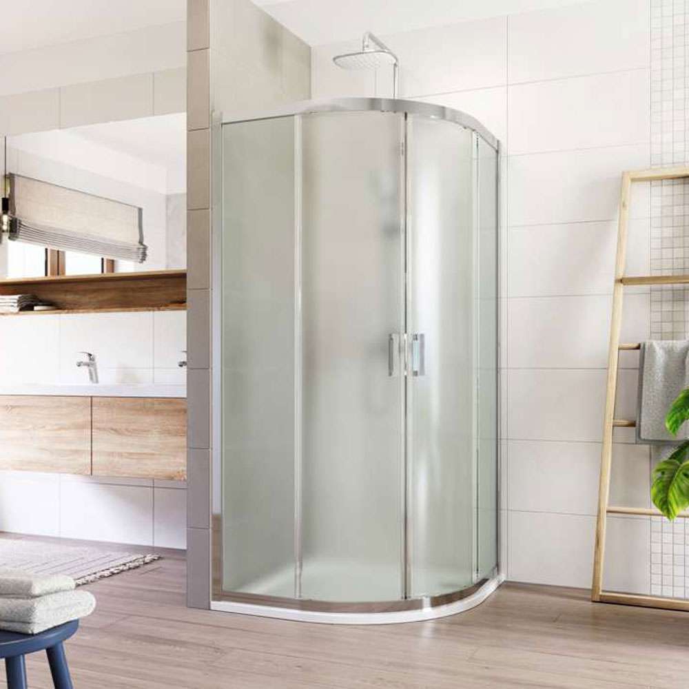 Hliníkové profily v barvě chrom, dveře posuvné, sklo Point, síla skla 6 mm, čtvrtkruh, rozměr 800 x 800 mm, výška 1900 mm