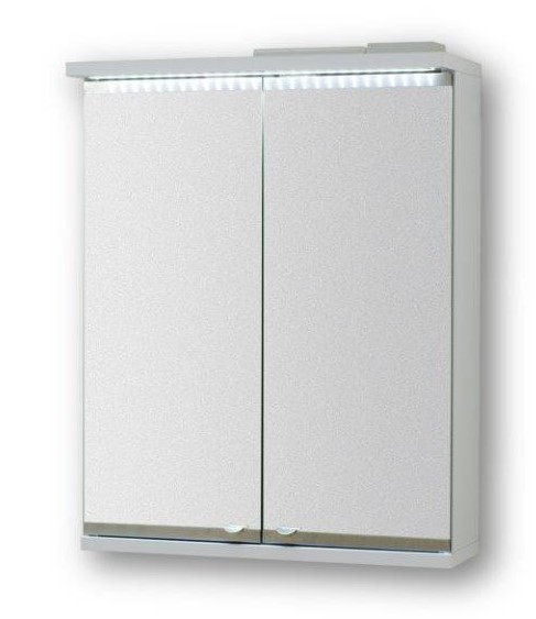 Horní závěsná zrcadlová skříňka NICE s LED osvětlením doplní propracovaným designem Vaší koupelnu. Skříňka je vyrobena z velmi kvalitního lamina v bílé barvě, které zaručuje odolnost proti teplu a vlhku a zajišťuje tak jejich dlouhou životnost. Ve skříňce jsou skleněné poličky, které zvětší úložné prostory pro veškerou kosmetiku.